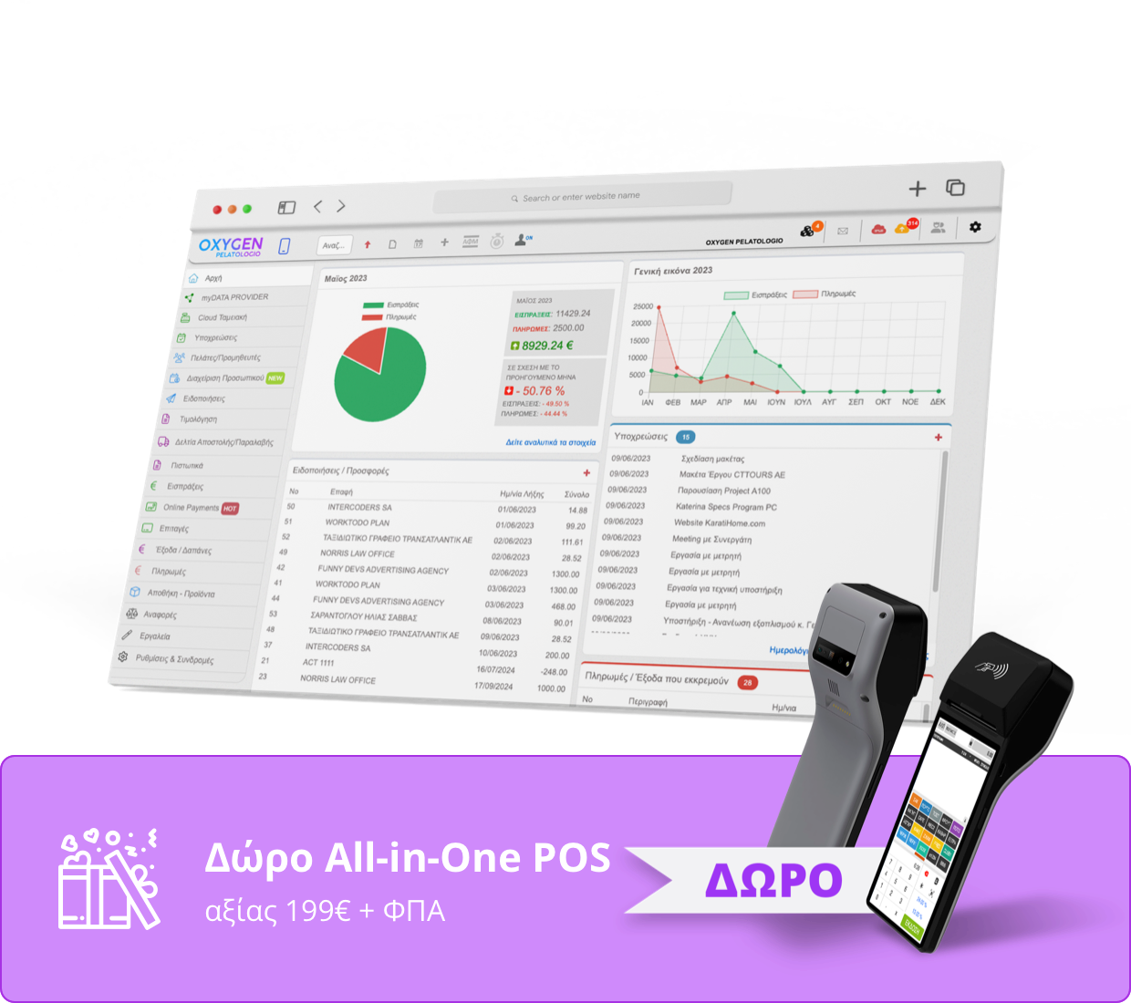 Το δώρο All-in-ONE POS ισχύει αποκλειστικά για νέους λογαριασμούς/νέες συνδρομές και μέχρι εξαντλήσεως των αποθεμάτων.